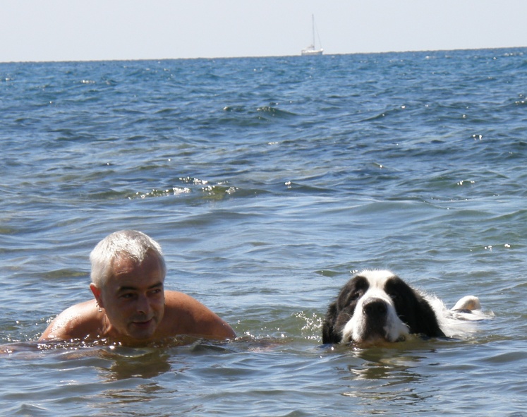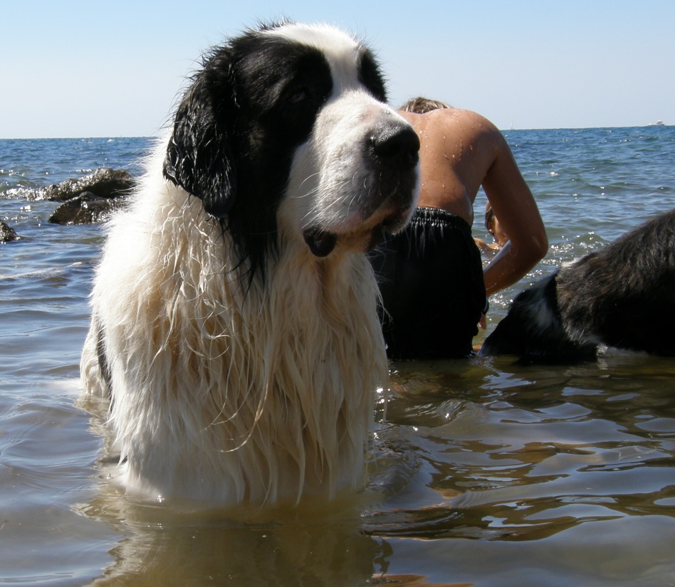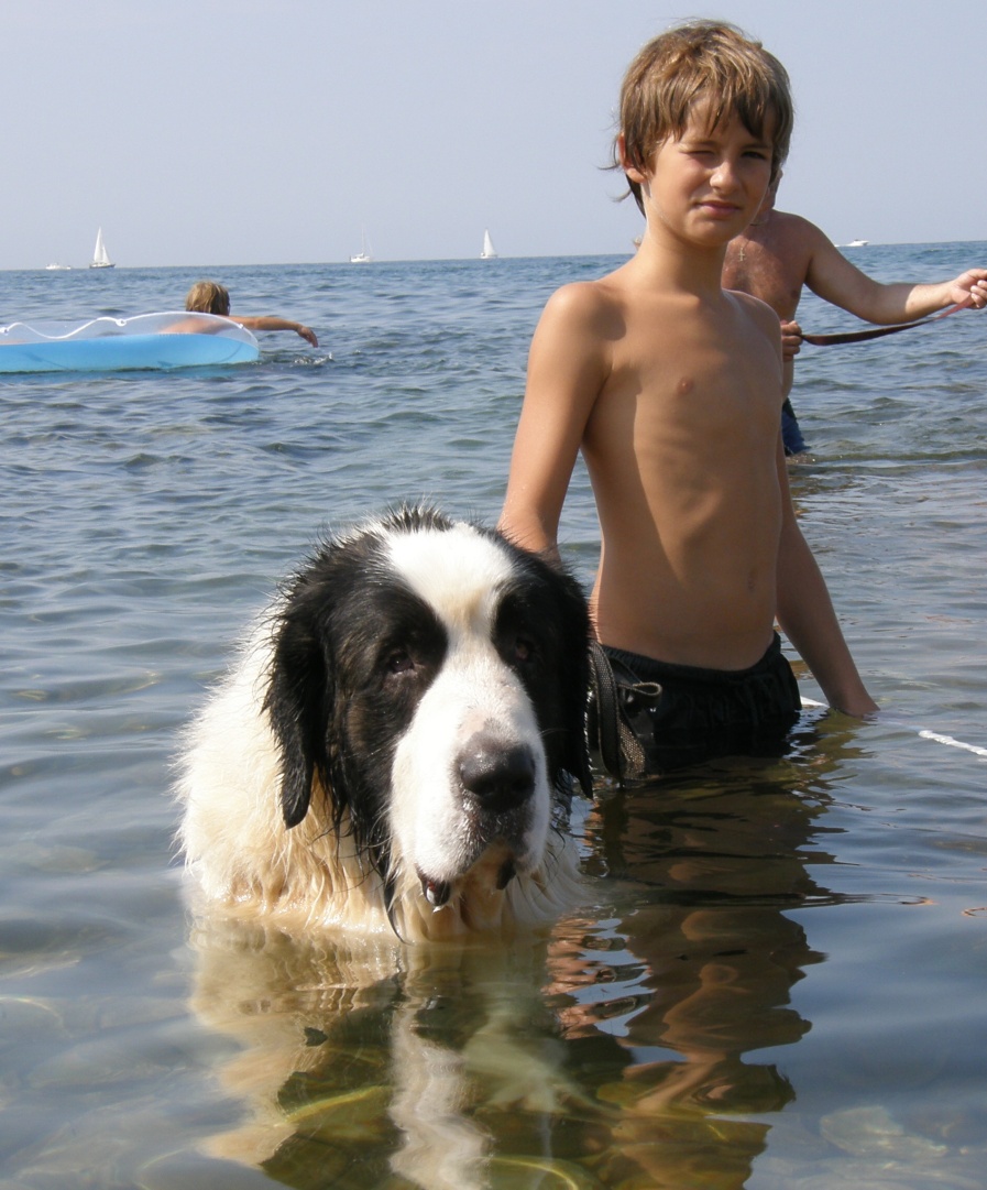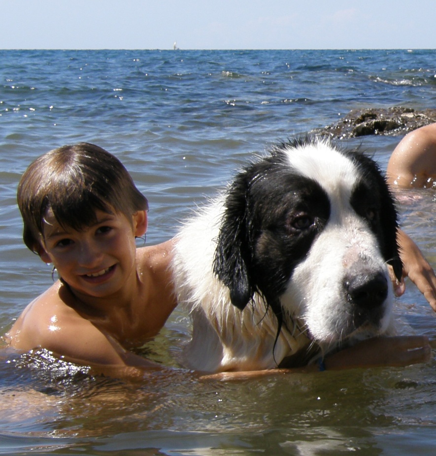 moře. Benny se koupe rád, u moře byl poprvé a moc se mu líbilo. Eginka
